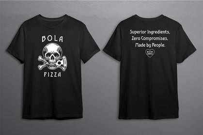 The Bola Classic T Shirt features our signature skull and slice design printed on soft, durable cotton that holds its shape and gets better with every wash.